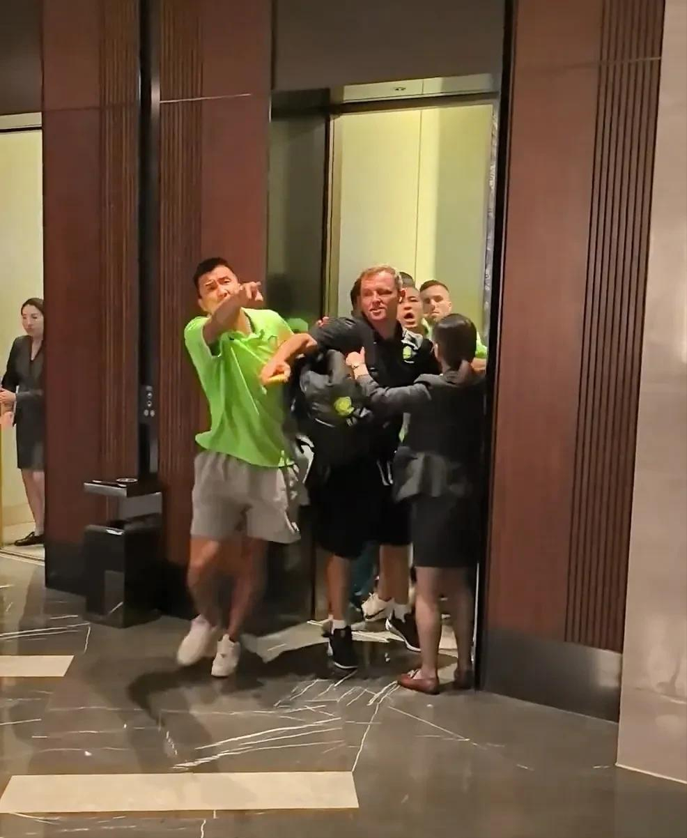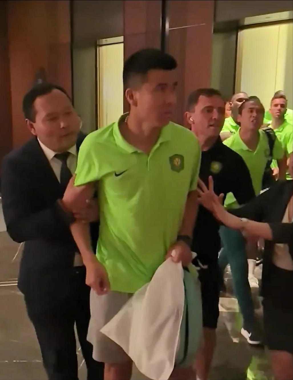 当时,在酒店电梯口有远征球迷高喊“你出来”,随后王刚和张玉宁从即将上行的电梯中冲出,情绪激动地回应称:“我们不想踢好吗?我们怎么不想踢好?有什么好哔哔的!”